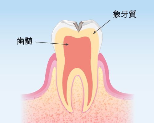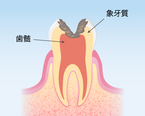エナメル質の下にある象牙質までむし歯が進んだ状態です。