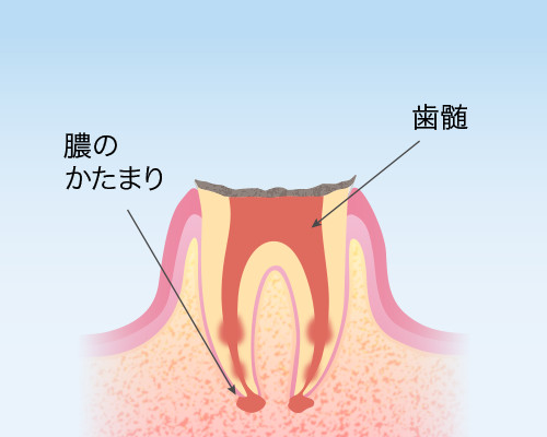 多くの場合は神経が死んで痛みを感じなくなっていますが、歯の根の先に膿が溜まって激しい痛みが出ることもあります。